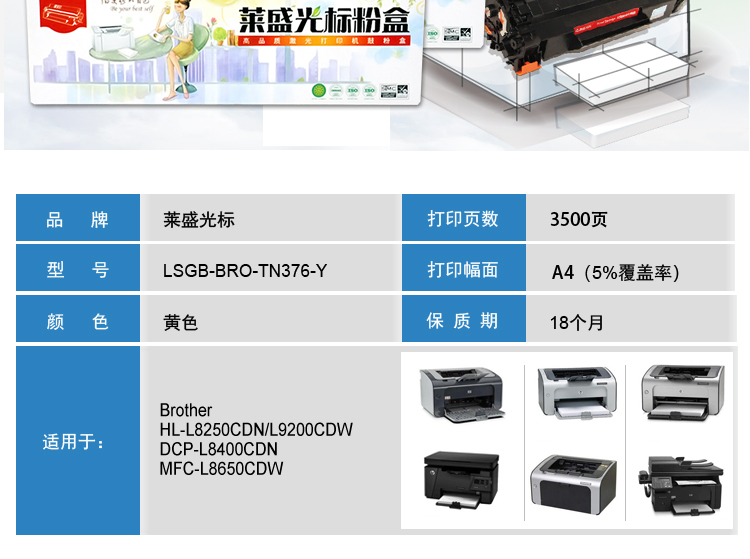 莱盛 光标LSGB-BRO-TN376-Y 粉盒 适用于Brother HL-L8250CDN/L9200CDW 黄色