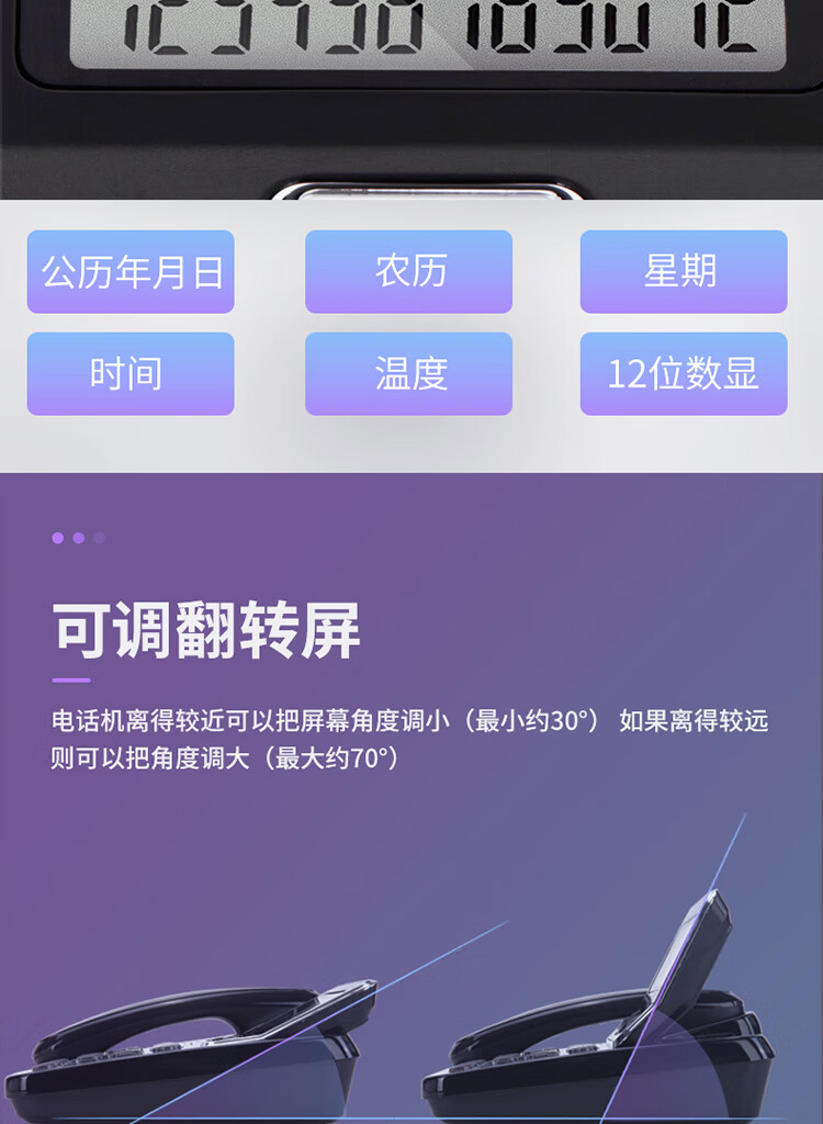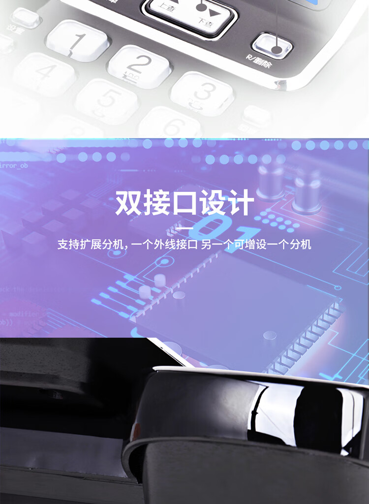 得力 789电话机座机 普通电话机 办公家用 翻转可摇头 可接分机 黑色