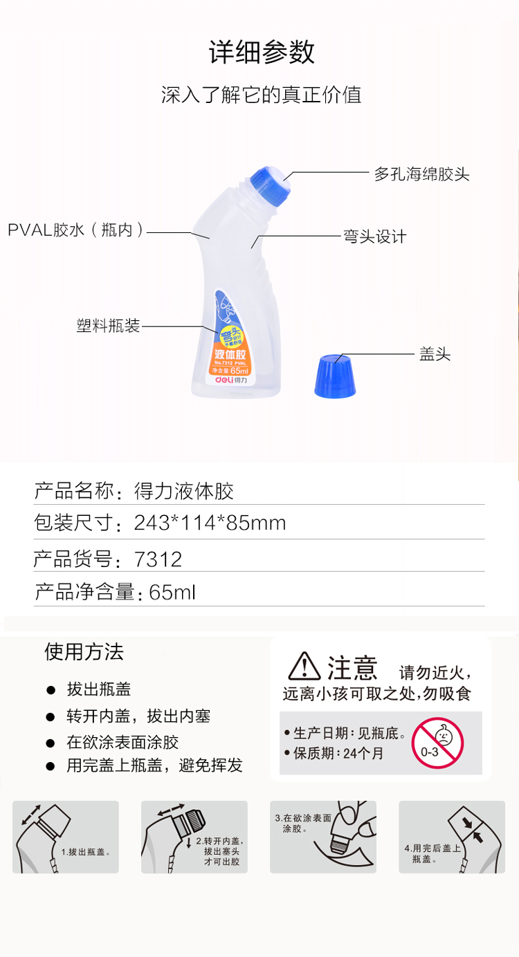得力 deli 65ml高粘度弯头液体胶水 12只装 办公用品 蓝色7312