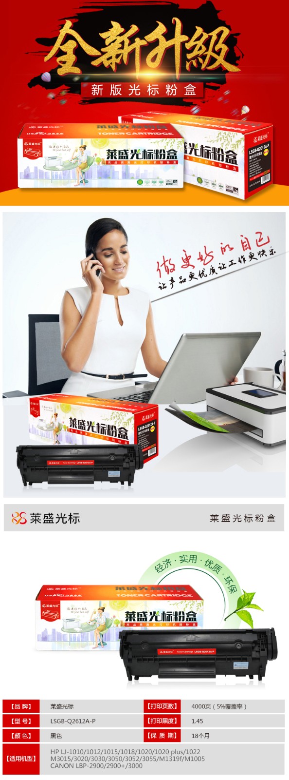 莱盛光标LSGB-Q2612A-P硒鼓 HP LJ-1010/1012/1015/1018/1020/1020 plus/1022/M3015/3020/3030/3050/3052/3055/M1319f/M1005