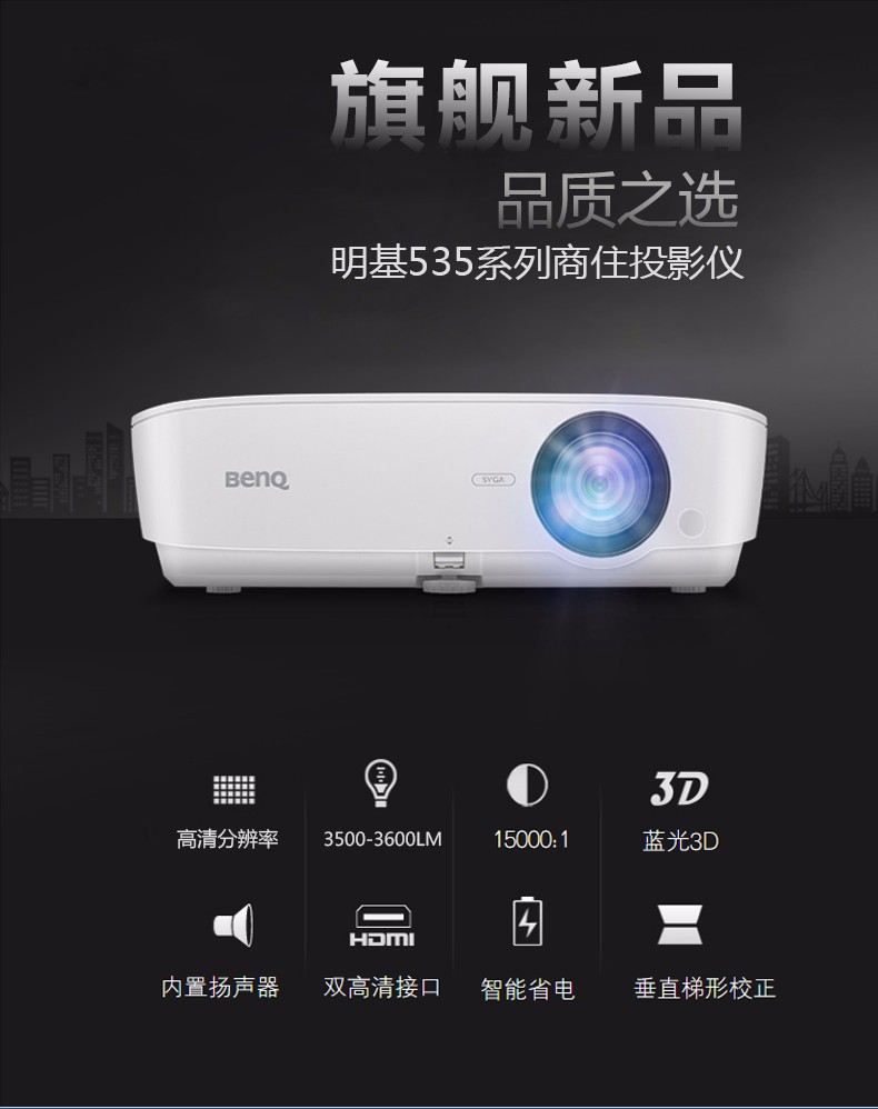 明基(BenQ)MS535投影仪办公家用 商务教育培训会议 高亮度高清投影机 MS535【普清 3600流明】 官方标配