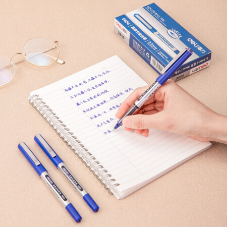 得力 deli 0.5mm蓝色直液式走珠签字笔学生考试中性笔 12支/盒S656 办公用品