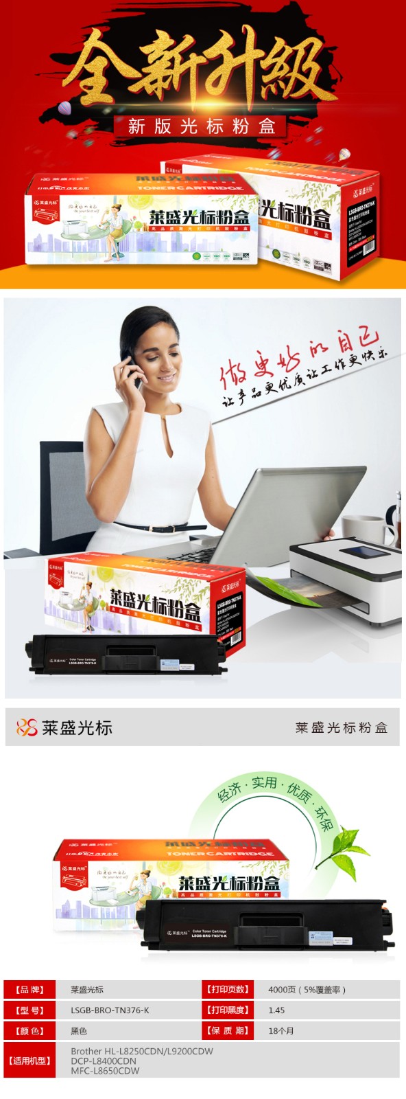 莱盛光标LSGB-BRO-TN376-K 黑粉盒 莱盛兄弟HL-L8250CDN/L9200CDW/DCP-L8400CDN/MFC-L8650CDW