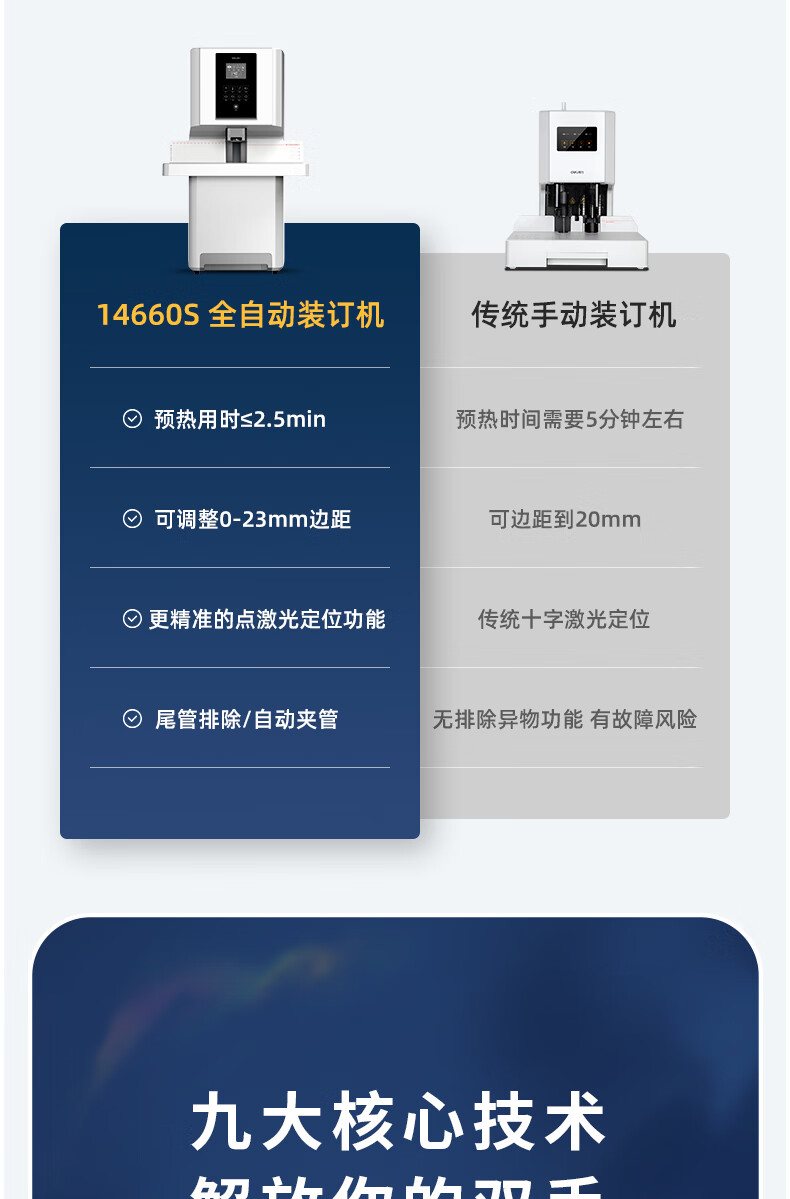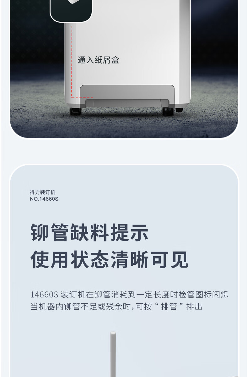 得力 14660S 装订机 50mm全自动财务凭证铆管装订机 激光定位会计凭证装订机凭证文件资料热熔胶管打孔机
