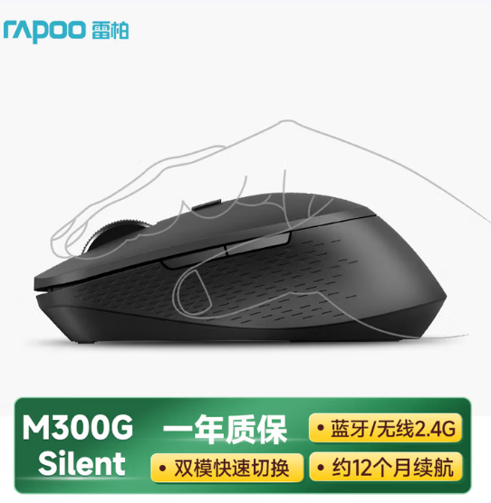 雷柏/RAPOO M300G 鼠标 无线轻音 办公 ipad平板华为苹果笔记本台式电脑适用 无光省电 M300G 升级款【深灰