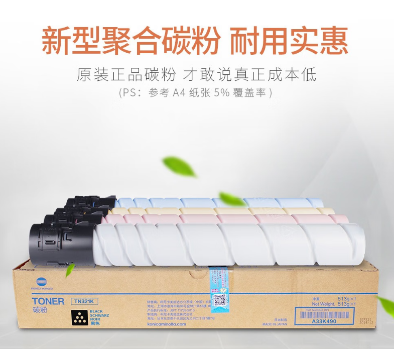柯尼卡美能达/KONICAMINOLTA TN321 粉盒 原装墨粉 CMYK4色 单支装 适用柯美C364e/C284e/C284/C224/C7822e