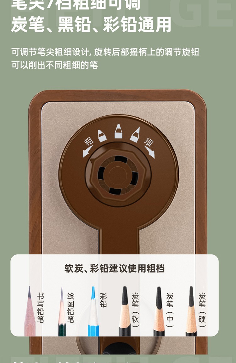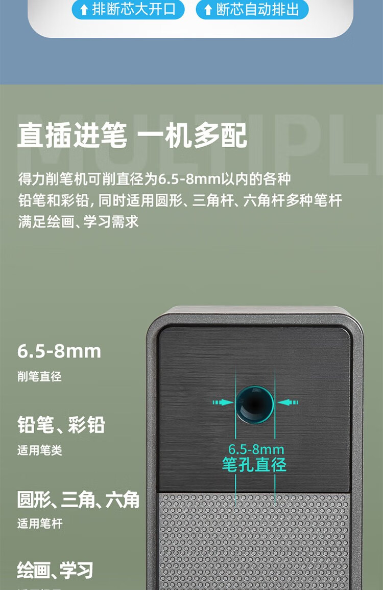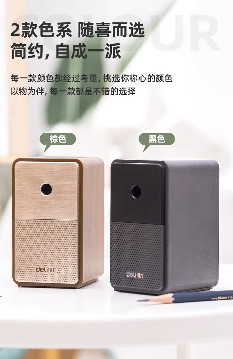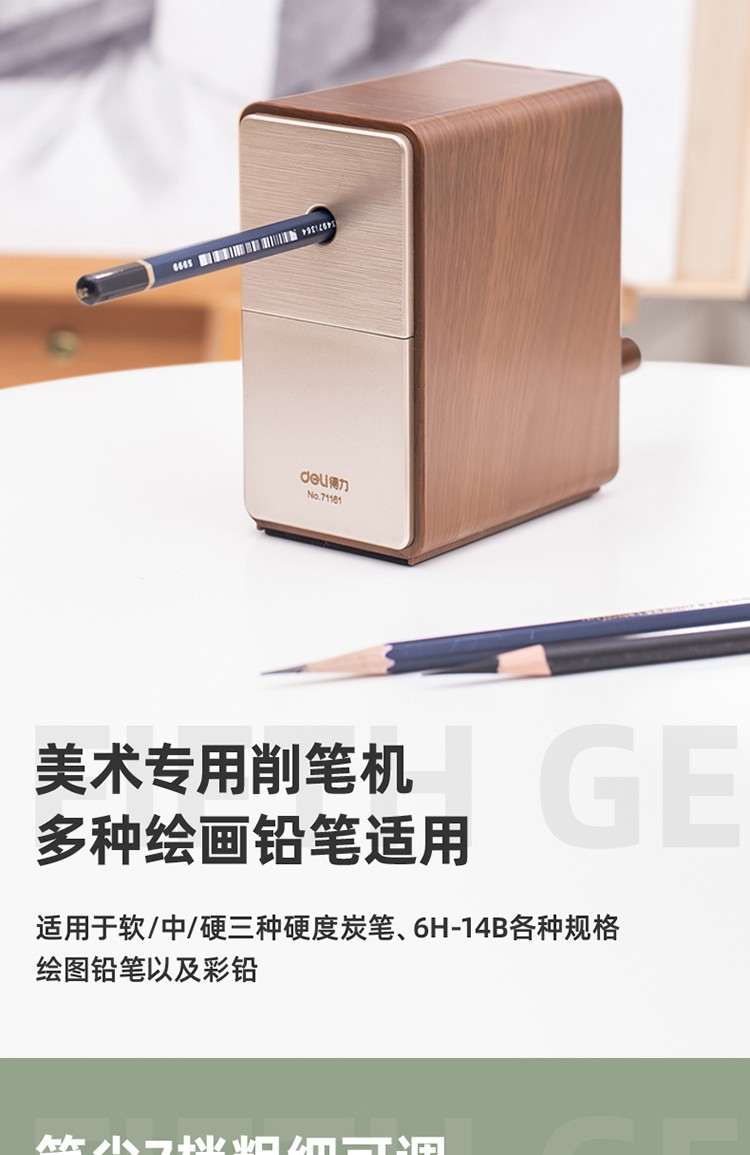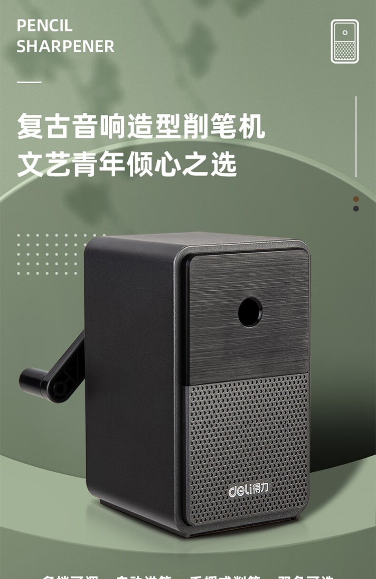 得力 deli 复古自动进笔削笔机 美术素描炭笔专用多档粗细调节 学 71160经典款 5档调节 黑色