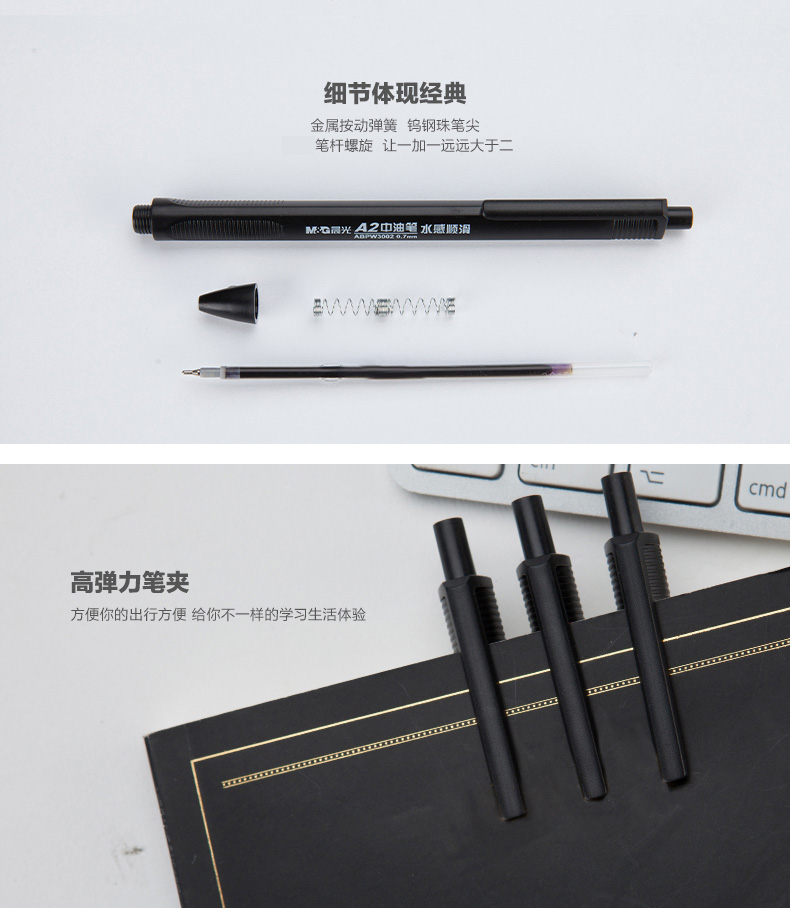 书写用笔类用具 晨光文具办公用品 按动圆珠笔中油笔 ABPW3002 蓝色10支装