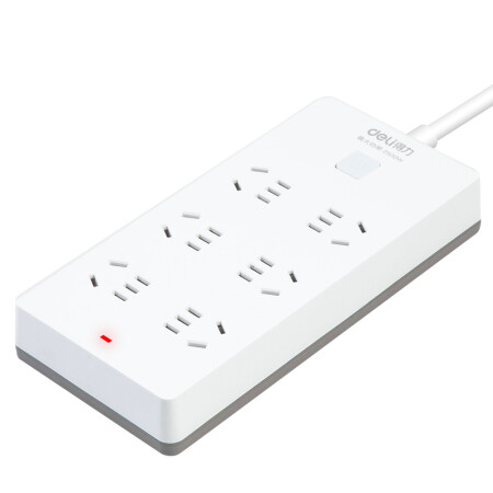 得力(deli)18168-05(5米)插座白灰色 5孔6组 2500W 10A 250V 加粗线芯 儿童保护门 750℃高温阻燃材质