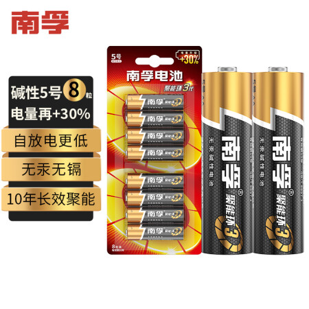 南孚 NANFU 5号相机电池/充电器 8粒 五号碱性 聚能环3代 适用挂钟键盘遥控器玩具血压计血糖仪等