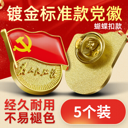 优和(UHOO)标准党徽胸章 别针磁扣蝴蝶扣为人民服务党员徽章 蝴蝶扣装厚2mm 0231