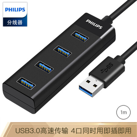 飞利浦 PHILIPS USB分线器3.0 高速扩展一拖四多接口转换器 HUB延长线集线器 1米