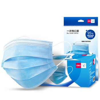 得力(deli)19380 成人一次性平面口罩三层防护含熔喷层无纺布防