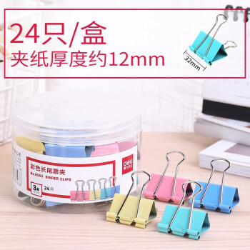 得力长尾夹大号多功能夹子小号燕尾夹办公文件票据夹学生试卷资料夹 8553ES混色/24只(32mm)