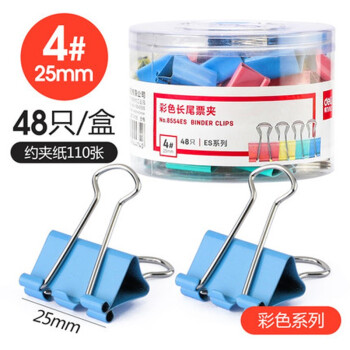 得力长尾夹大号多功能夹子小号燕尾夹办公文件票据夹学生试卷资料夹 8554ES混色/48只(25mm)