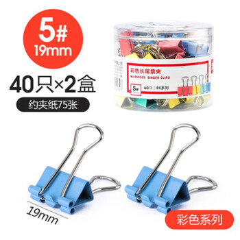 得力长尾夹大号多功能夹子小号燕尾夹办公文件票据夹学生试卷资料夹 8555ES混色/40只(19mm)