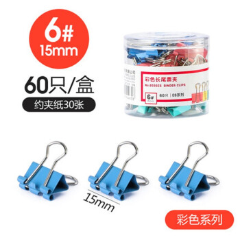 得力长尾夹大号多功能夹子小号燕尾夹办公文件票据夹学生试卷资料夹 8556ES混色/60只(15mm)