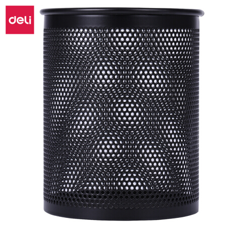 得力 deli 密集金属网纹圆形笔筒 创意桌面收纳盒 办公用品 黑色909