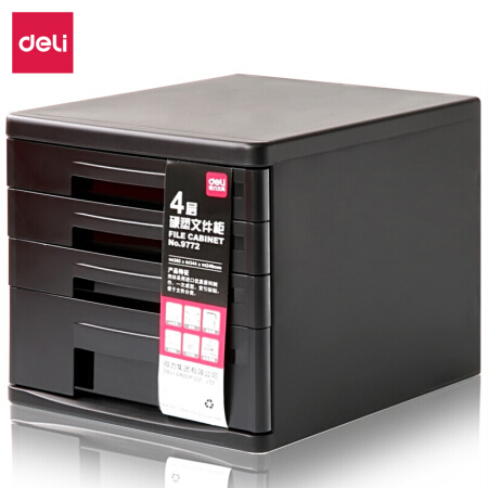 得力 deli 4层桌面文件柜 A4拉手资料收纳柜 带索引标签 办公用品 黑色9772