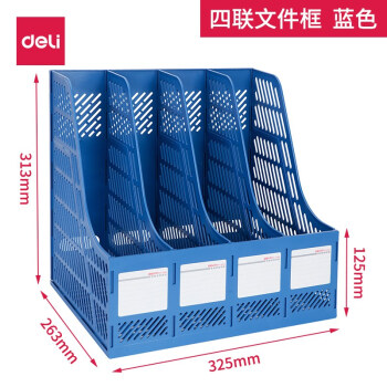 得力(deli) 四联组合多功能文件框 四栏文件架 9848-2蓝色四栏文件栏