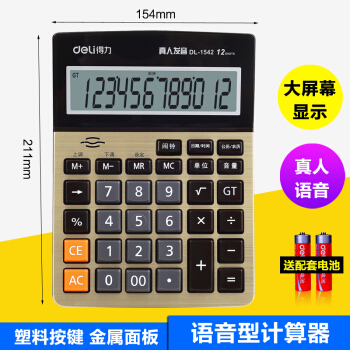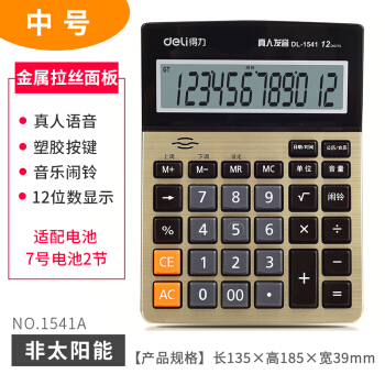 得力(deli) 办公时尚经典计算器 语音计算器 财务计算器 1541A 金色(小号)