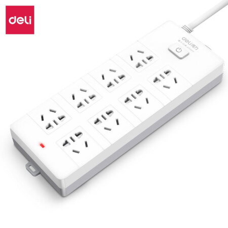 插座 得力(deli)新国标安全插座/插排/插线板/接线板 总控开关 儿童保护门 8组合孔18262-10
