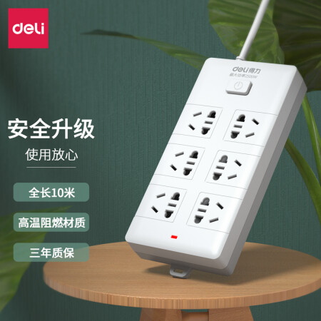 插座 得力(deli) 插排/插线板/接线板/排插/拖线板 6位组合孔10米 总控开关 18264