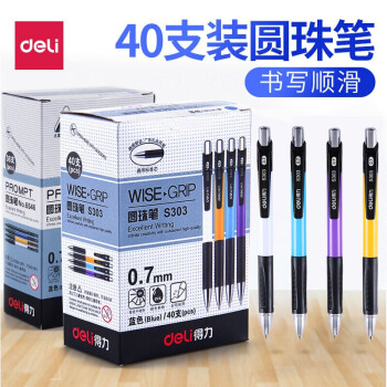 书写用笔类用具 得力 deli 0.7mm蓝色按动圆珠笔中油笔 新升级圆珠笔 40支装S303