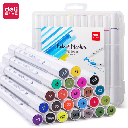 书写用笔类用具 得力 deli 24色双头细杆马克笔套装 学生水彩笔双头绘画彩笔手绘漫画笔设计绘画记号笔 70700-24