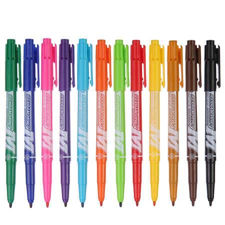 书写用笔类用具 晨光 M&G 文具M10/12色小双头油性记号笔标记笔水笔 12支装APMV7402