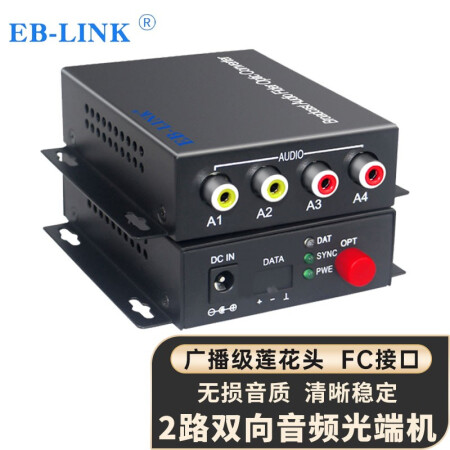 数据线类 EB-LINK EB-SX-2A音频光端机2路双向光纤延长器广播级音频转换器莲花头单模单芯FC接口