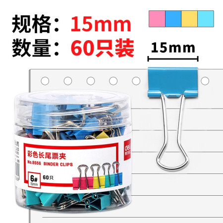 得力 deli 60只15mm彩色长尾夹票夹 6#金属燕尾夹票据夹子 办公用品 8556