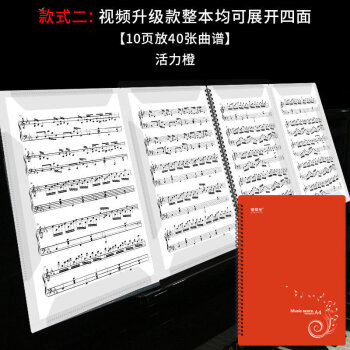 钢琴谱夹子 升级款整本均可展开四面 10页放40张曲谱 活力橙 音乐曲谱本可修改折叠展开式不反光
