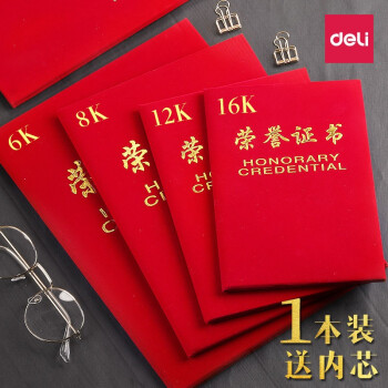 • 财务行政用品 得力 国为 a4可成单本装的 定制款荣誉证书 含印刷内页