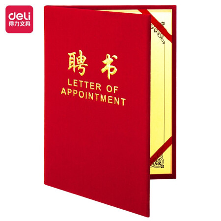 • 得力 deli 50本8K荣光系列绒布浮雕工艺聘书 红色7598