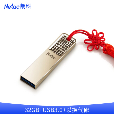 朗科(Netac)32GB USB3.0 U盘 U327 全金属高速迷你镂空设计闪存盘 创意中国风 珍镍色