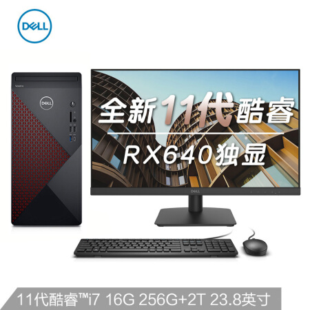 戴尔dell成就5890 商用办公台式机电脑主机 11代i7-11700F 16G 256G+2T RX640 4G独显 +23.8英寸电脑显示器