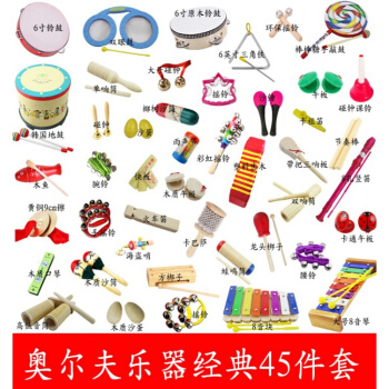 • 奥尔夫乐器--四十五件套送收纳袋 奥尔夫儿童打击乐套装玩具幼儿手握听力 奥尔夫乐器--四十五件套送收纳袋