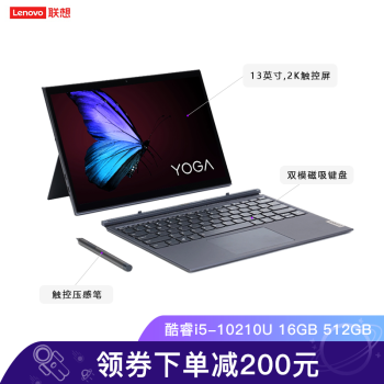 联想二合一笔记本YogaDuet 13英寸二合一平板电脑轻薄便携win10办公笔记本 【i5-10210U+16G+512G】灰