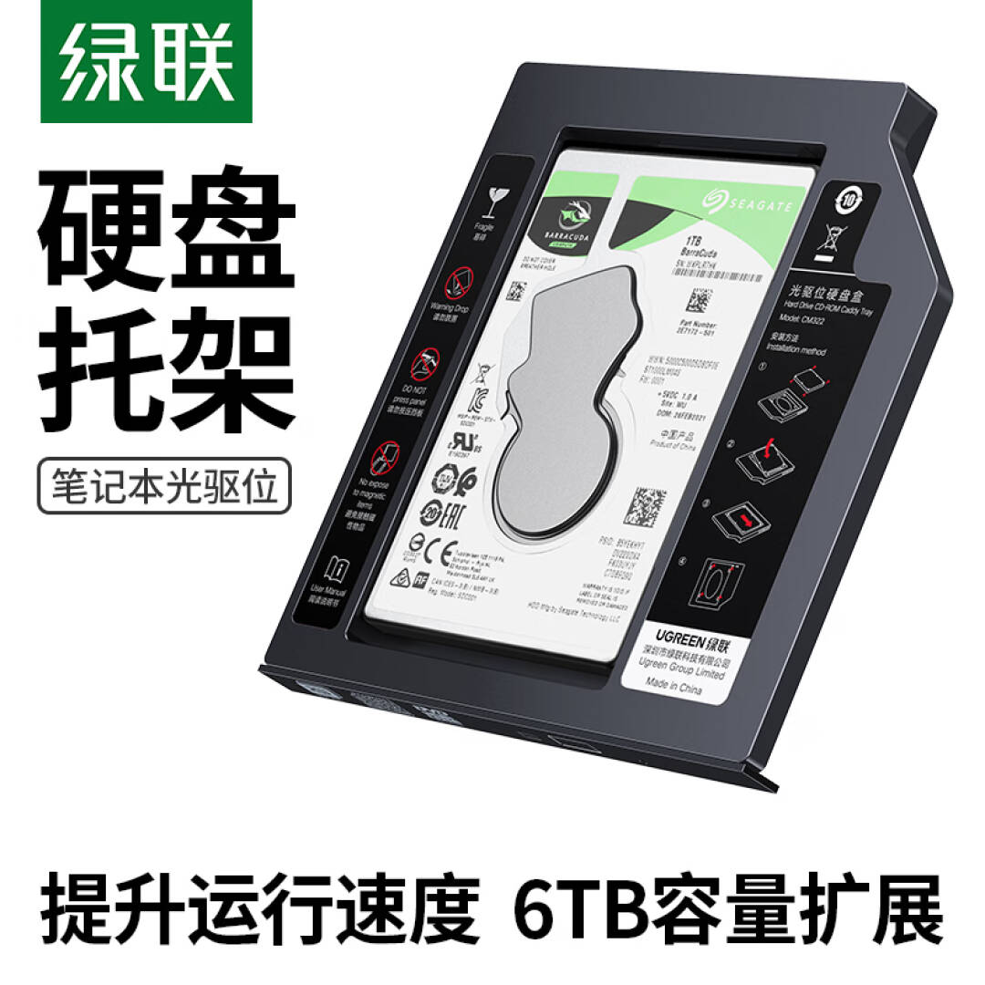 绿联/UGREEN 70657 接线盒 9.5mm笔记本光驱位SATA硬盘托架 2.5英寸SSD固态硬盘支架 9.5mm厚度
