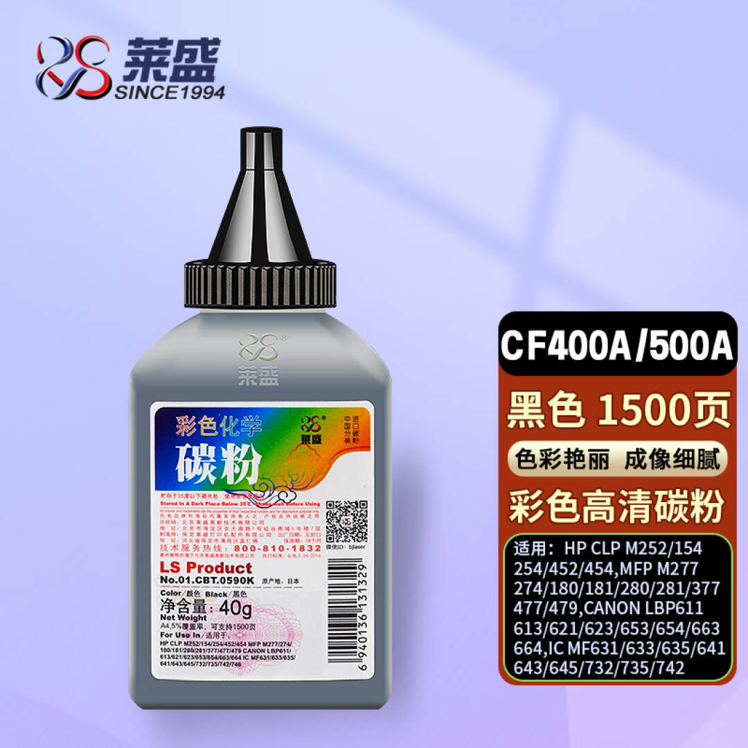 莱盛 CF400A/500A 碳粉 彩色碳粉 适用惠普M252 154 254 452 454 MFP M277 274 180 181 280 281 377 477 479 【黑色碳粉】1500页×1瓶
