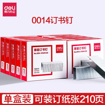 得力 0014 装订及打孔类 厚型金属定书钉优质高强度钢订书针办公用品 23/23号单盒装 0014(可订210页)