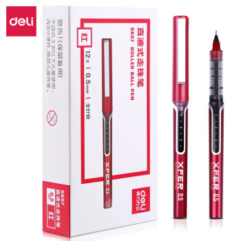得力 S657 直液式走珠笔 书写用笔类用具 签字笔 红色1支 0.5mm