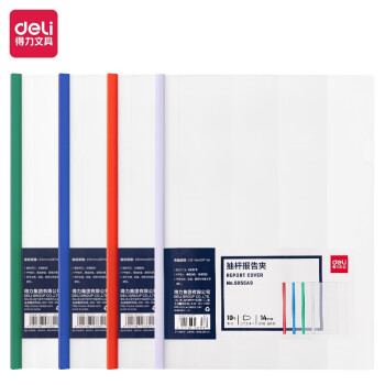 得力 5855AS A4透明拉杆夹 文件夹 颜色随机 10只装 背宽14mm