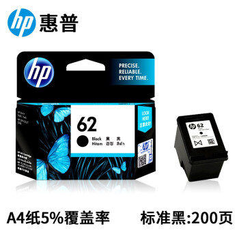 惠普 62原装墨盒适用HP Officejet 200移动打印机黑色墨盒 喷墨盒