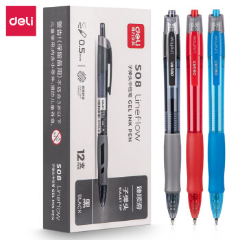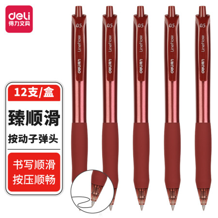 得力(deli)S60 书写用笔类用具 中性笔0.5mm子弹头12支/盒红色