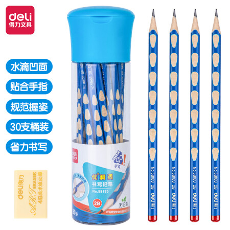 得力 deli 58185 书写用笔类用具 洞洞笔铅笔 30支2B铅笔三角杆易抓握 儿童矫姿铅笔 学生练字笔