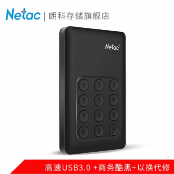 朗科 (Netac)USB3.0移动硬盘 K390安全系列2.5英寸 按键加密USB物理密码存储硬盘 黑色 1TB
