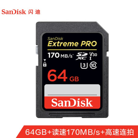 闪迪(SanDisk)64GB SD存储卡 U3 C10 V30 4K 至尊超极速版内存卡 读速170MB/s 写速90MB/s 捕捉4K超高清