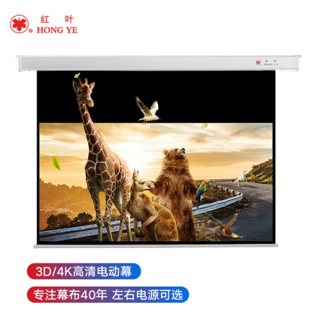 • 投影幕 红叶120英寸16:9玻纤电动遥控幕布 投影仪幕布 YE01(左右电源可选 上黑边56cm)画质更清晰